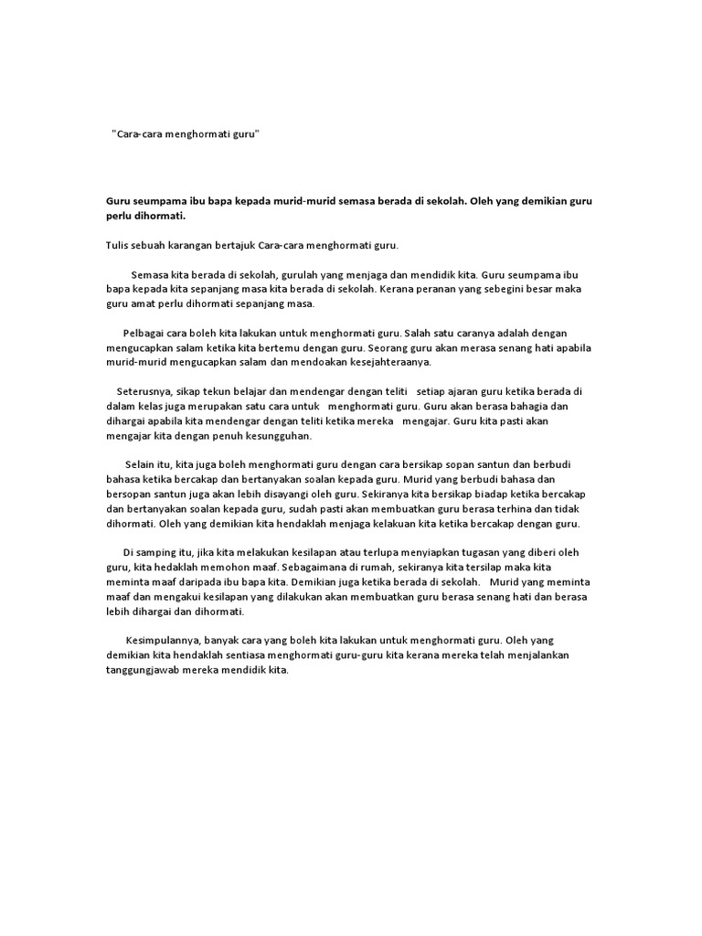 Karangan Tentang Cara Cara Menghormati Guru Pdf